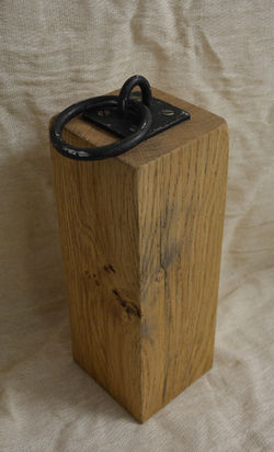 ![]() Wine bottle/glass rack. | ![]() Oak door stop with metal ring. | ![]() Mug holder. |